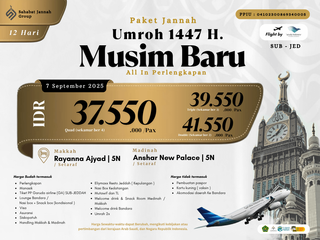 - Maskapai & Harga Sewaktu - waktu dapat berubah, mengikuti kebijakan atau pertimbangan dari Kerajaan Arab Saudi, dan Negara Republik Indonesia.
